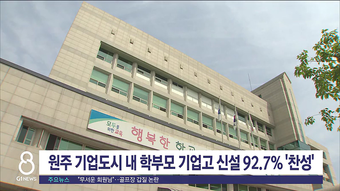강원도교육청은 원주 기업도시 내 학부모 등을 대상으로 설문조사를 벌인결과, 10명 중 9명이 새로 학구를 만들고 기업고를 신설해 자녀가 진학하기를 원하는 것으로 조사됐다고 밝혔습니다.