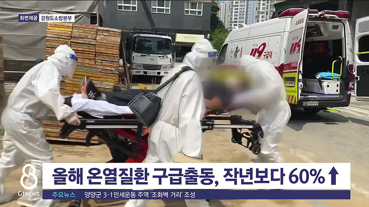 강원도소방본부에 따르면, 올해 8월까지 온열질환 구급 출동 건수는 60건으로, 작년 같은 기간보다 24건 늘었습니다.