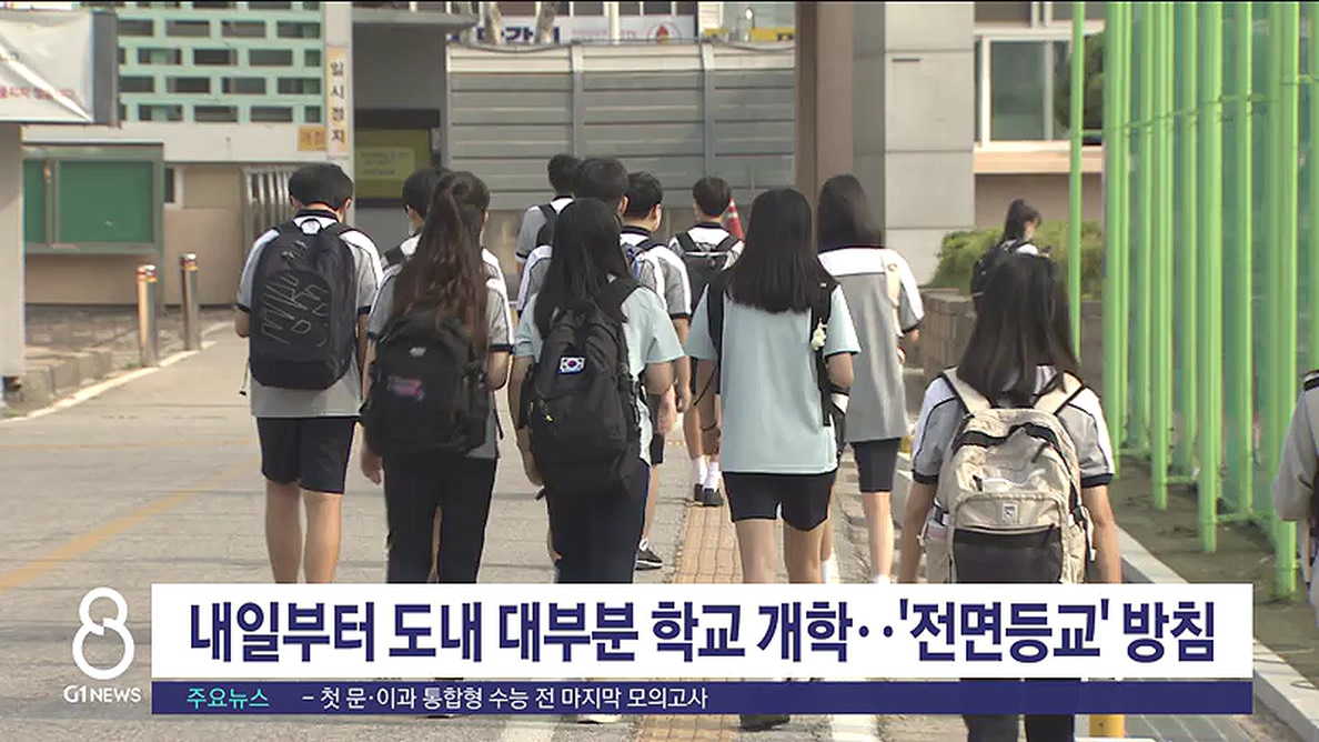 내일부터 도내 대부분 학교 개학 '전면등교'