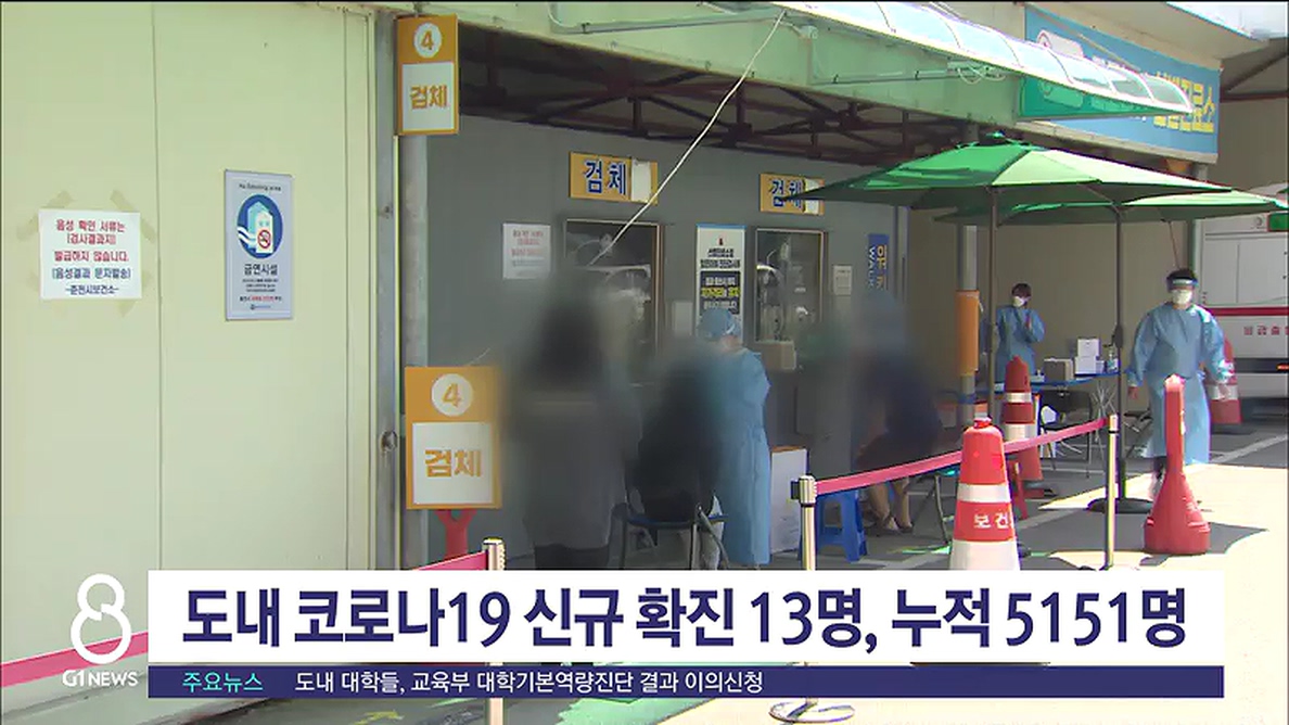 오늘 도내에서는 코로나19 신규 확진자 13명이 발생해 누적 5151명이 됐습니다.