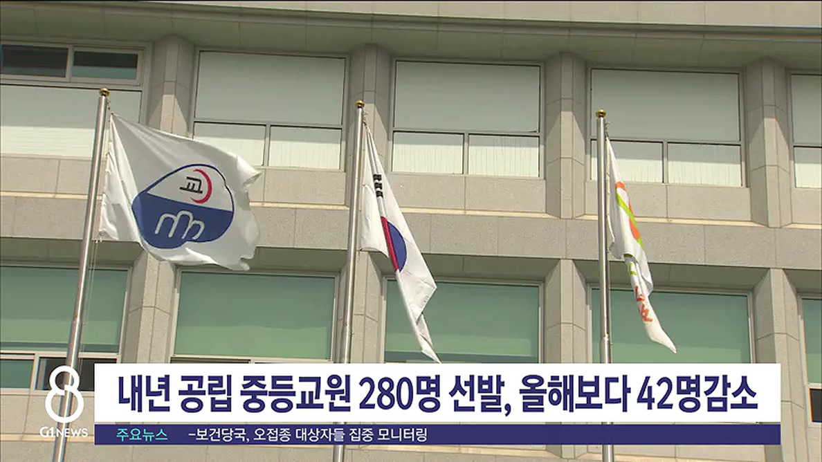 이는 올해 선발 인원인 322명보다 42명 줄어든 수치로, 도내 중등교원 선발인원은 매년 줄어 6년새 307명이 줄었습니다.