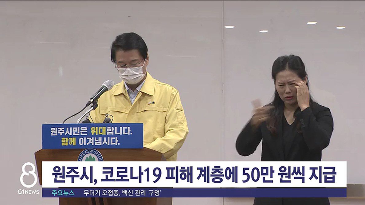 원주시, 코로나19 피해 계층에 50만 원씩 지급