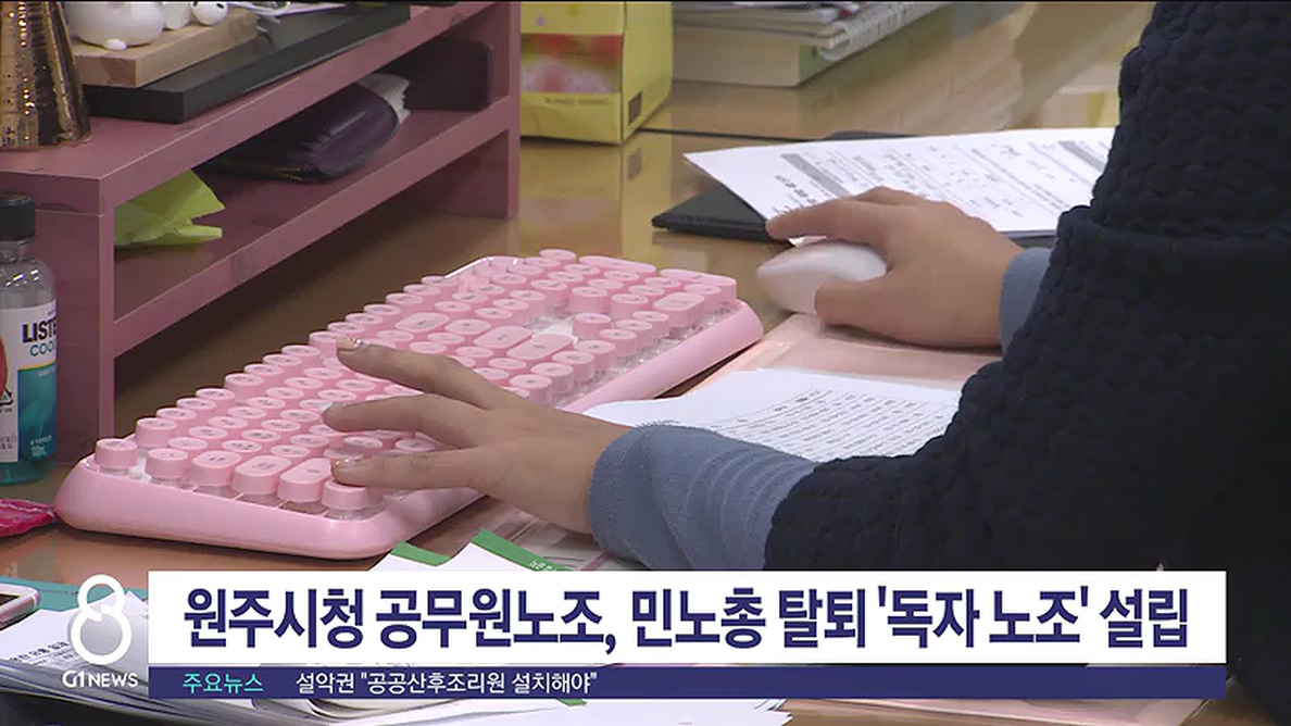원주시청 공무원 노조 비대위는 어제 온라인 임시 총회를 열고 민주노총 탈퇴와 조직 형태 변경을 위한 투표를 진행해 68.31%가 찬성했다고 밝혔습니다.