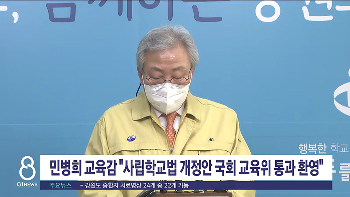 민병희 강원도교육감은 최근 사립학교법 개정안이 국회 교육위원회를 통과한 것에 대해 환영의 뜻을 밝혔습니다.