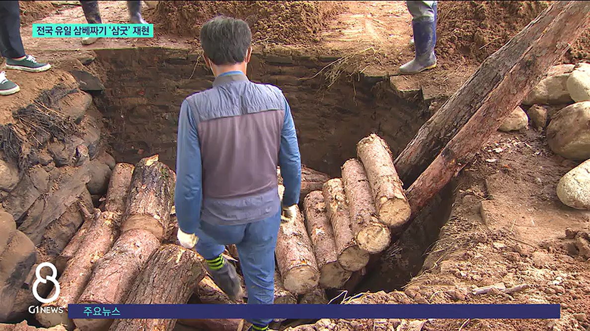 전통적인 방식으로 삼베옷의 재료인 삼을 찌는 삼굿은 많은 시간과 노동이 필요해 요즘은 거의 사라졌습니다.