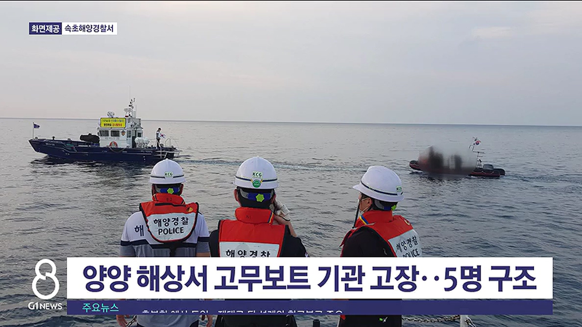 양양 동호해수욕장 인근 해상에서 기관 고장으로 표류하던 승선원 5명이 해경에 구조됐습니다.