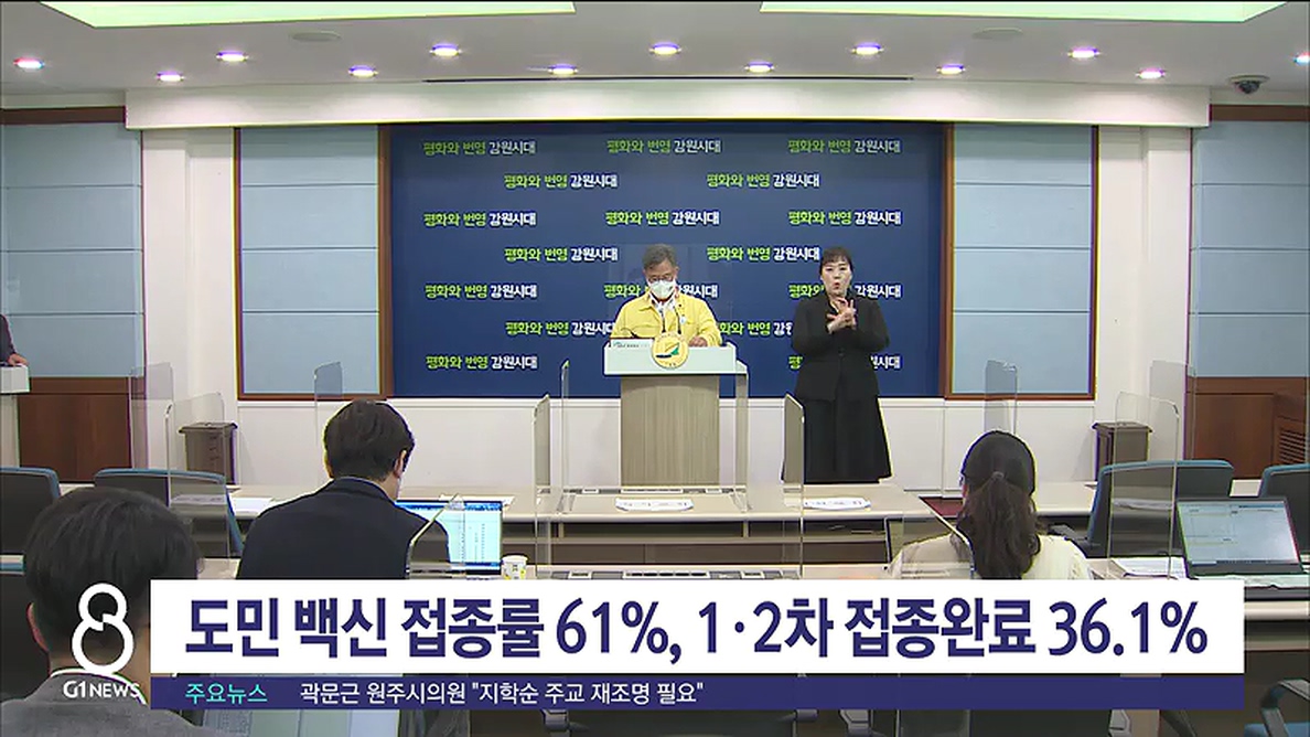 강원도에 따르면, 도내 백신 1차 접종자는 95만 4천여명으로 전체 대비 61.1%를 기록하고 있고, 1·2차 접종을 모두 마친 도민은 36.1%, 56만 4천여명으로 집계됐습니다.