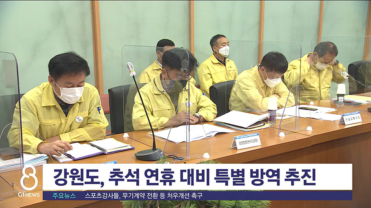 강원도는 18개 시·군과 공동으로 오는 26일까지 3주간을 '추석연휴 특별대책기간'으로 정하고, 경찰과 함께 취약시설을 중심으로 합동 방역 점검에 나설 예정입니다.