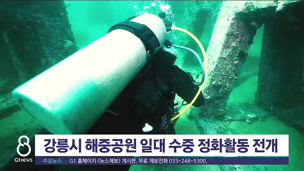 강릉시와 강릉관광개발공사가 강릉 사근진 해중공원 일대에서 수중 정화활동을 벌였습니다.