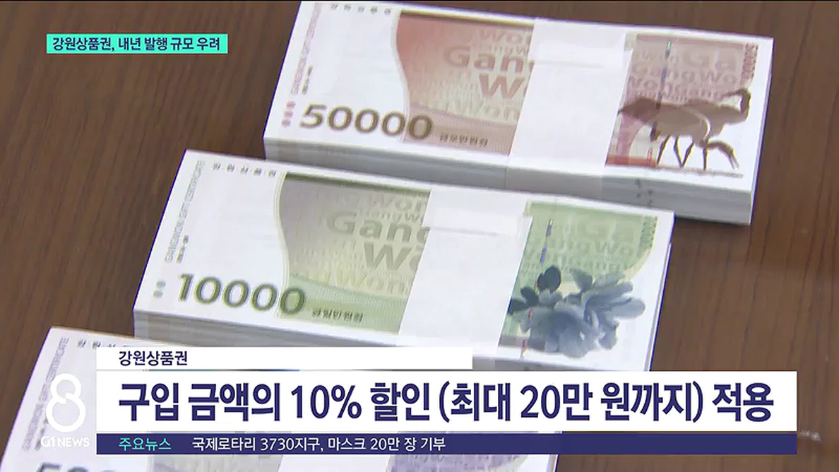 "강원도형 지역 화폐로 자리매김하고 있는 강원상품권이 내년에는 발행 규모가 줄어들 수 있다는 우려가 나오고 있습니다."