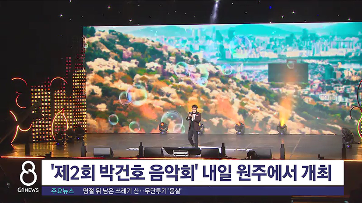 G1방송 창사 20주년을 기념해 마련된 이번 음악회에서는 이용과 정수라, 진성 등 유명 가수들이 박건호 선생이 작사한 노래를 부르며 고인의 음악적 업적을 기립니다.