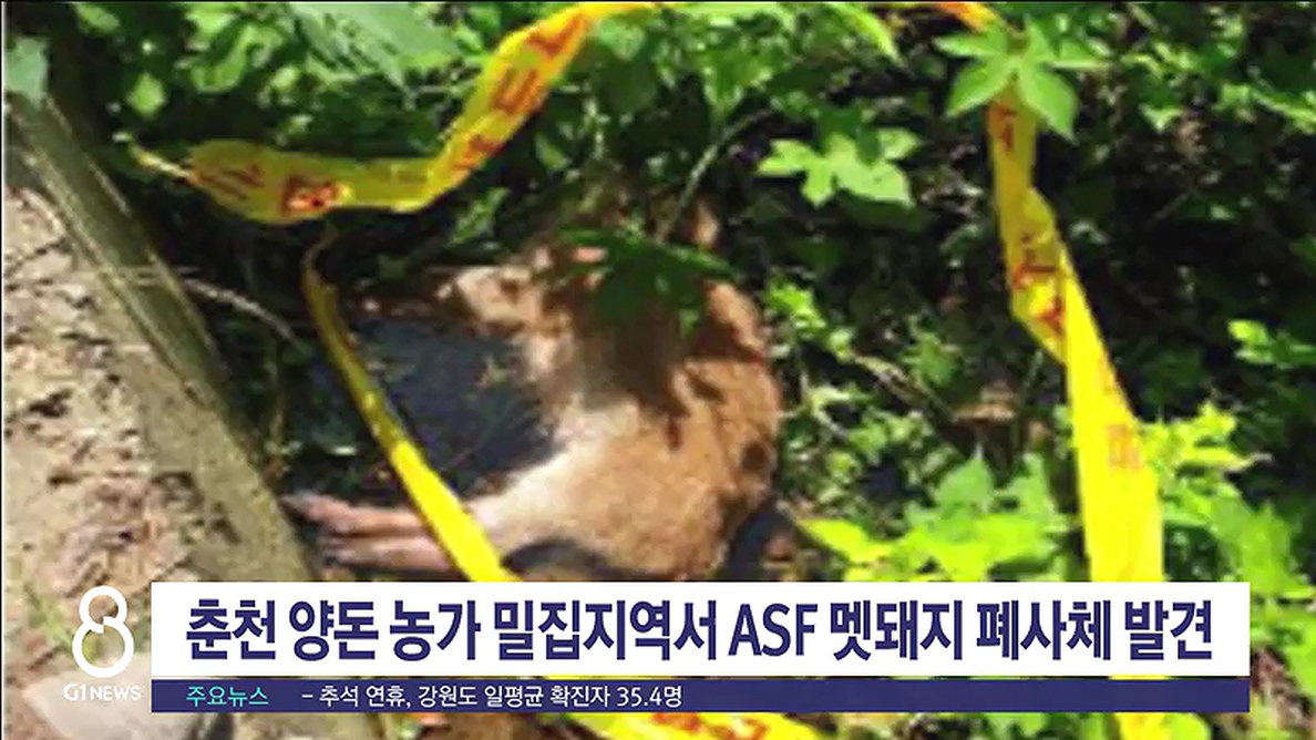춘천시는 지난 19일 동산면 원창리에서 발견된 야생멧돼지 폐사체에서 ASF 바이러스가 검출됐다고 밝혔습니다.