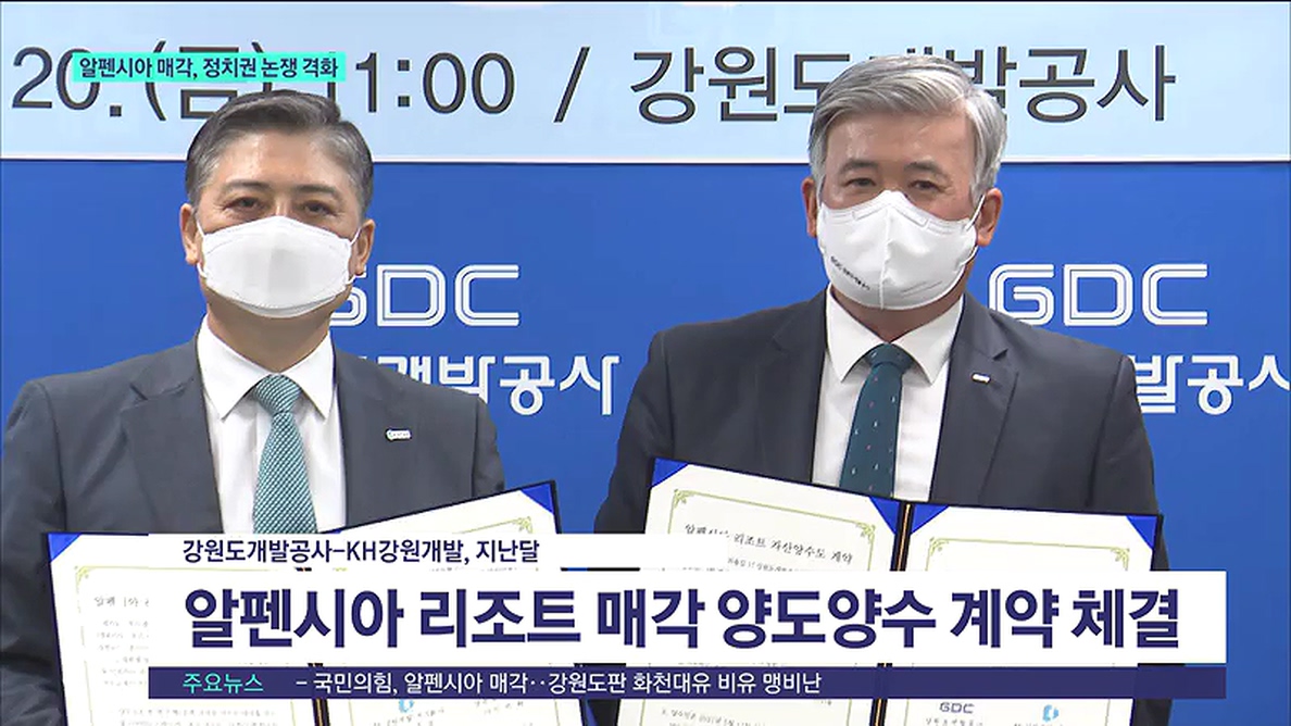 지난달 강원도개발공사와 KH강원개발은 평창 알펜시아 리조트 매각을 위한 양도양수 계약서에 최종 서명했습니다.