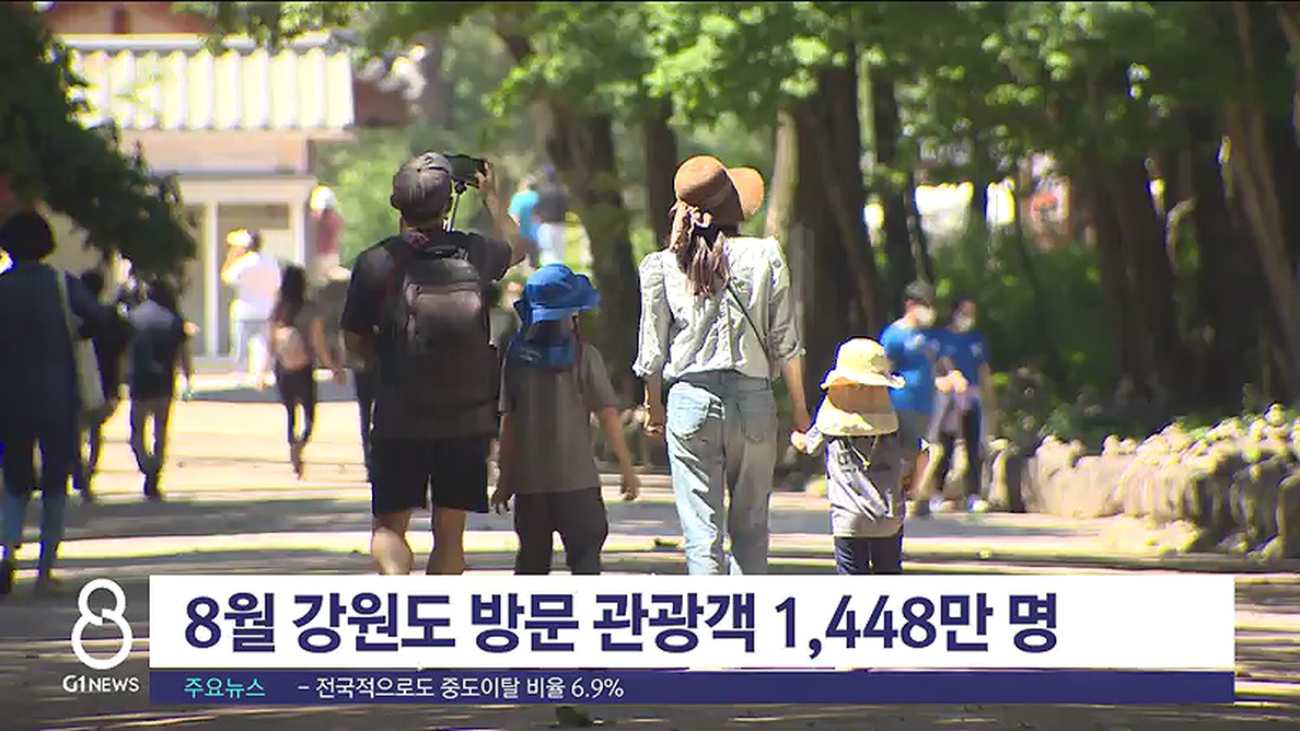 강원도관광재단에 따르면 지난 8월 강원 방문 관광객은 1,448만 명으로 전월에 비해 8%, 109만 6,522명 늘었습니다.