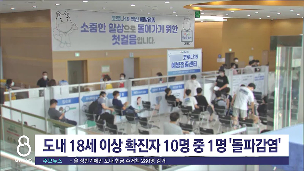 도내 18세 이상 확진자 10명 중 1명 '돌파감염'
