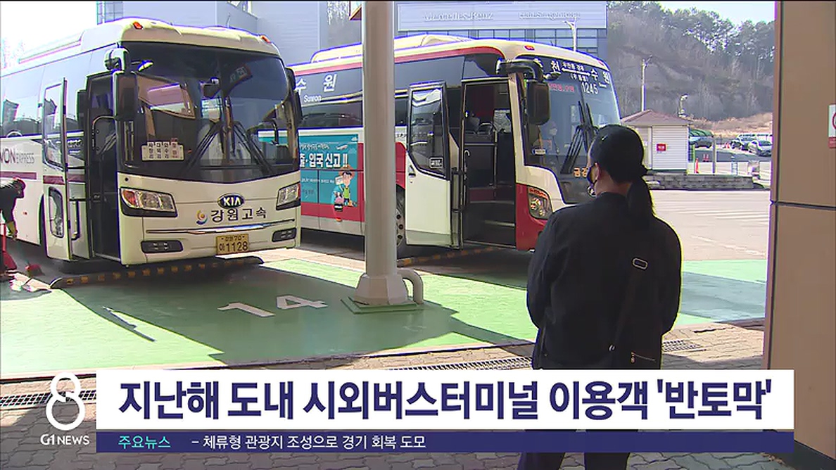 코로나19 사태로 지난해 강원도내 시외버스터미널의 이용객 수가 반토막난 것으로 조사됐습니다.
