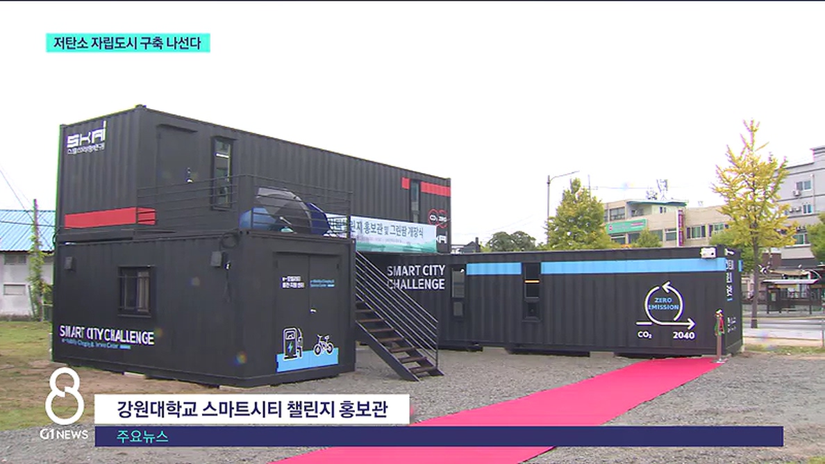 강원대학교 춘천캠퍼스 정문 인근에 위치한 스마트시티 챌린지 홍보관입니다.