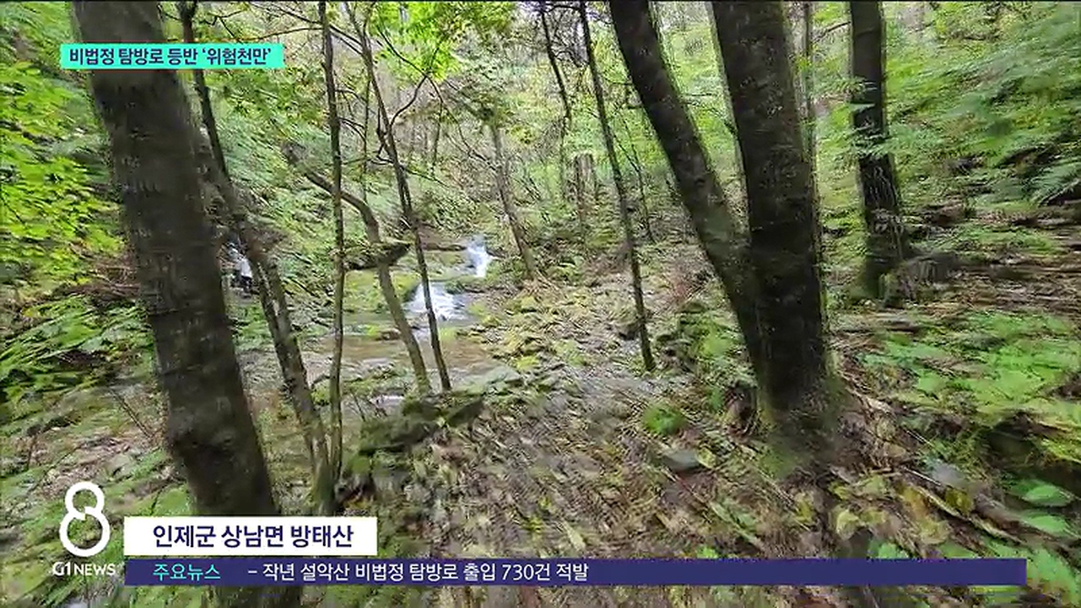 "비법정 탐방로다 보니까, 이정표 같은 게 정리가 안돼 있습니다. 그래서 내려오다가 길을 잃고 헤매다 조난당하고, 그런 사고가 많이 발생하고 있습니다. "