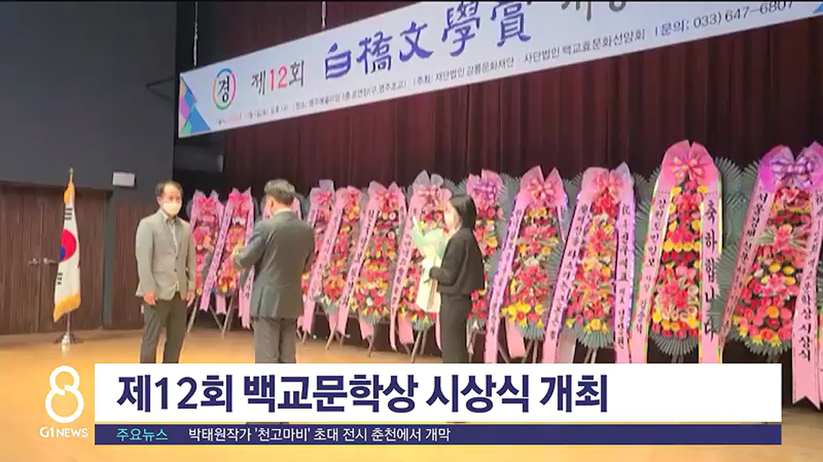 제12회 백교문학상 시상식이 오늘(9일) 강릉 명주예술마당 공연장에서 열렸습니다.
