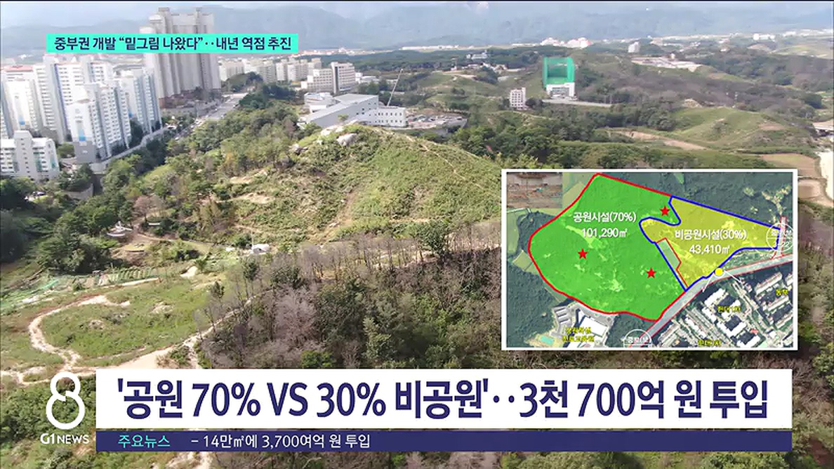 3천700억원의 민간자본을 들여 전체의 30% 4만3,410㎡를 공동주택과 근린생활시설로 조성한 뒤 나머지 70%인 10만1,290㎡를 공원으로 만들어 시에 기부채납합니다.