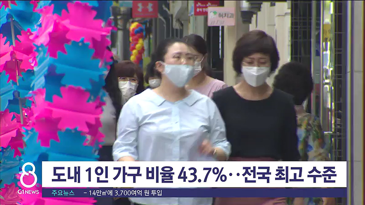 행정안전부의 올해 3분기 주민등록 인구통계에 따르면, 도내 1인 가구 비율은 43.7%로, 전국 17개 시도 가운데 전남에 이어 두 번째로 높았습니다.