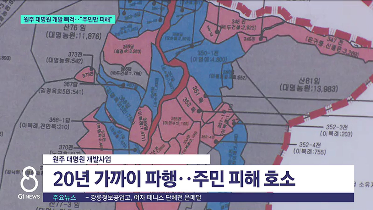 일반 주민들은 사업을 백지화하고 자신들의 땅을 사업부지에서 빼달라고 원주시에 요구하고 있습니다.