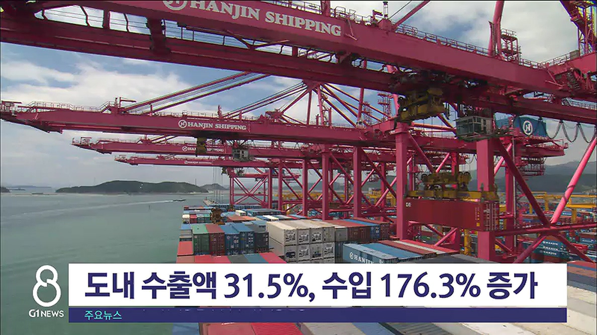 동해세관에 따르면 지난달 도내 수출액은 2억5,000만 달러, 수입액은 5억8,000만 달러로 지난해 같은 기간에 비해 수출은 31.5%, 수입은 176.3% 늘었습니다.