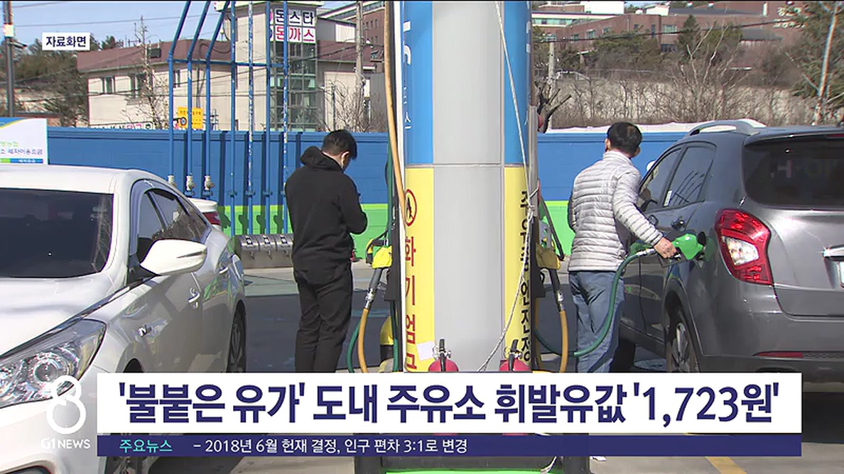'불붙은 유가' 도내 주유소 휘발유값 '1,723원'