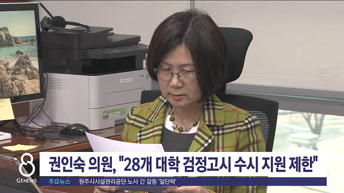 권인숙 의원, 개 대학 검정고시 수시 지원 제한"