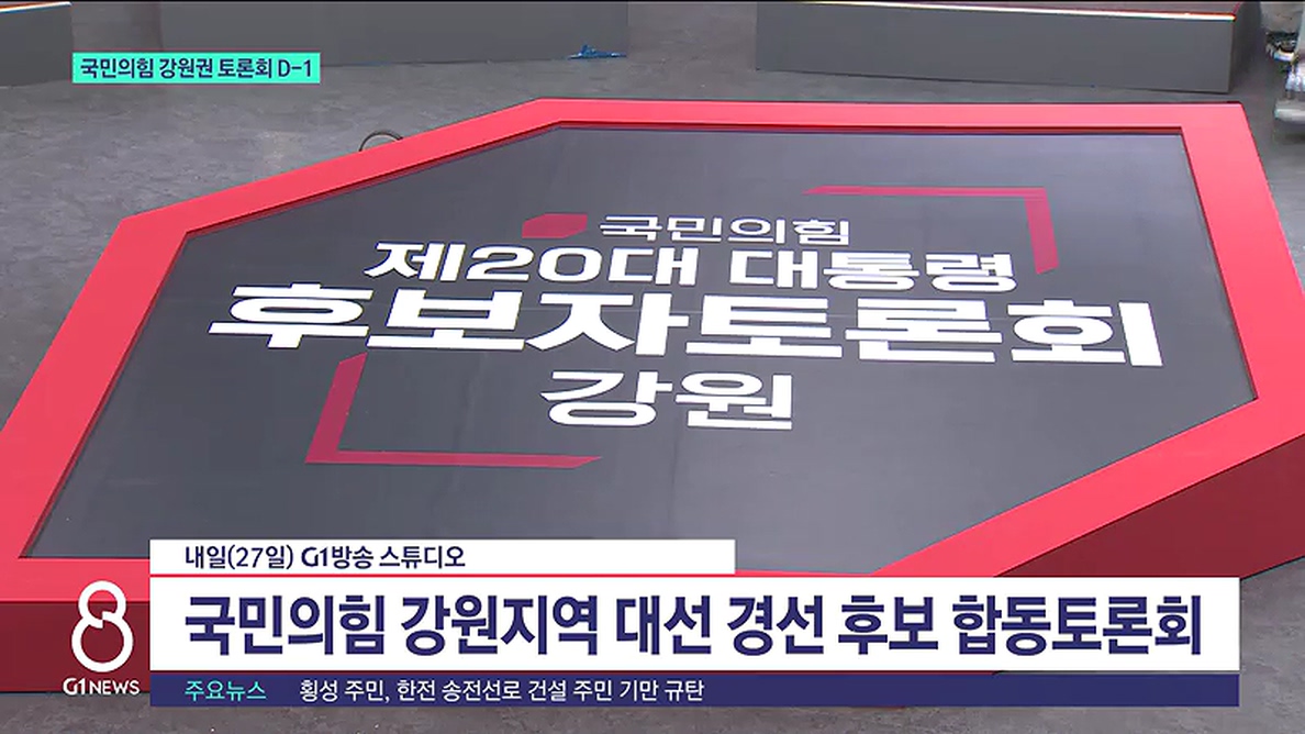 G1방송에서 열릴 이번 토론회에는 윤석열·원희룡·유승민·홍준표 등 4명의 후보가 강원도 발전 전략과 본선 경쟁력 등을 두고 치열한 혈전을 벌일 전망입니다.