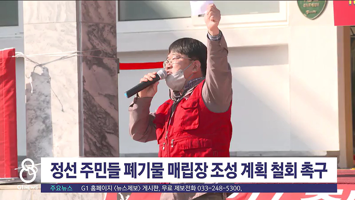 G1 뉴스에서 보도한 정선 산업 폐기물 매립장 조성 사업과 관련해 정선지역 주민들이 오늘(27일) 정선군청에서 대규모 항의 집회를 열고, 무조건적인 사업 철회를 요구했습니다.