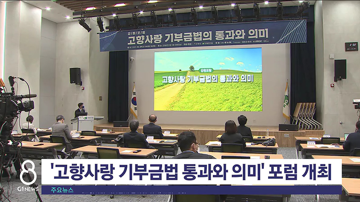 지난 9월, 국회 문턱을 넘은 '고향사랑 기부금 법'의 제정 의미와 향후 추진 방향을 논의하기 위한 포럼이 강원연구원에서 열렸습니다.