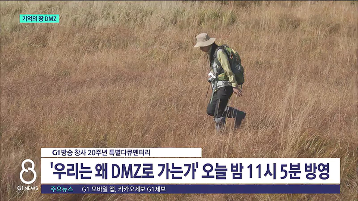 DMZ의 자연과 역사를 담은, G1방송 창사 20주년 특별다큐멘터리, '우리는 왜 DMZ로 가는가'는 오늘 밤 11시 5분에 방영됩니다.