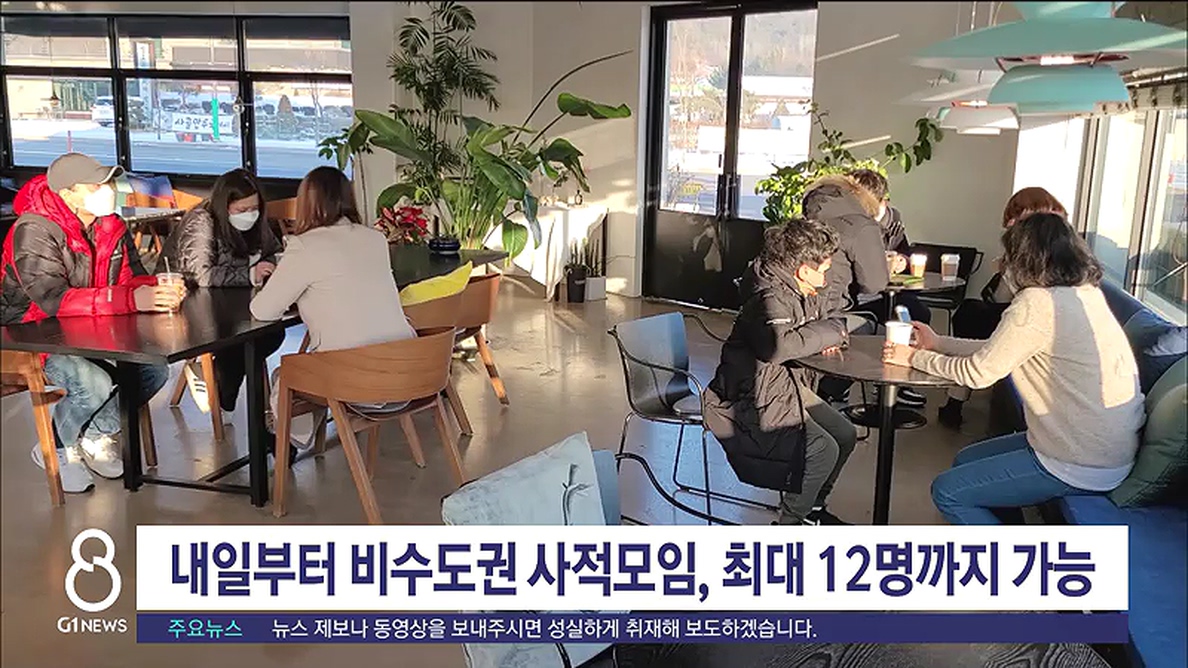 비수도권에선 접종 여부와 관계없이 최대 12명까지 모일 수 있지만, 식당과 카페 등에선 한 모임당 미접종자가 4명을 넘어선 안됩니다.