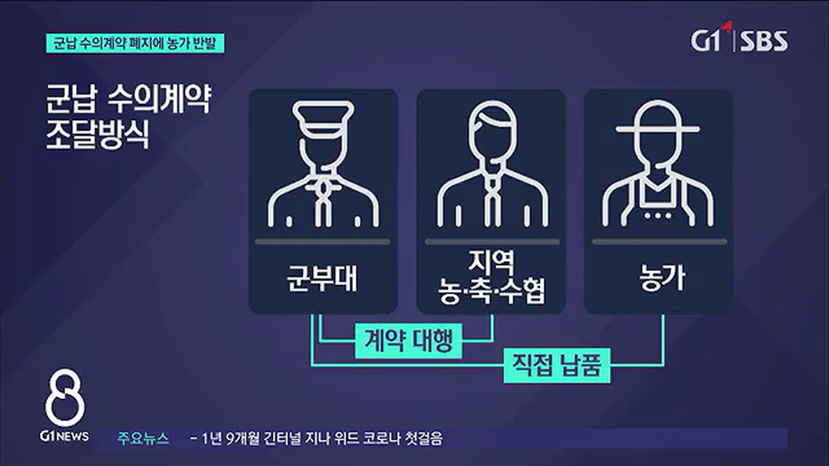 /기존 군납 수의계약 방식은, 매년 3월 군부대와 지역 농·축·수협이 식재료 계약을 맺으면,