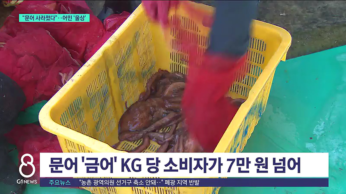 "문어가 원체 안나니까 KG당에 5만원 넘겨가고 어민들이 나가서 한두마리 잡는 사람이 과반수로 그냥 들어오는 사람이 수두룩하고 환동해본부에선 연승어민들을 대책을 마련해 주셔야겠습니다."