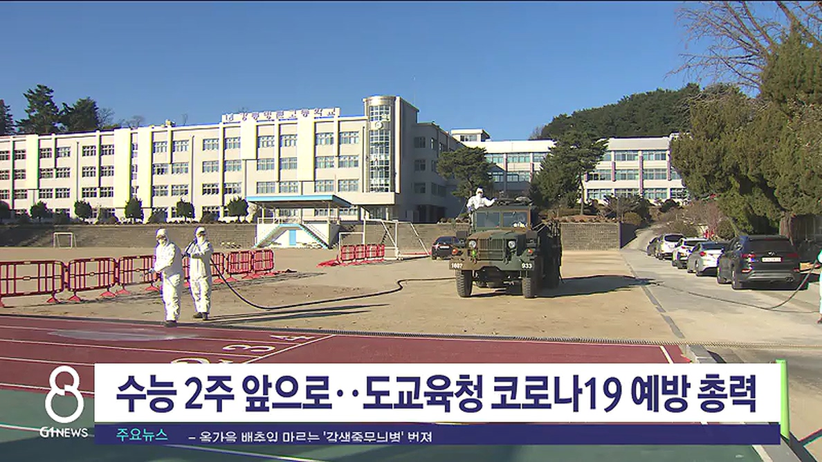 도내 모든 고등학교는 오는 11일부터 19일까지 원격수업으로 전환되며, 수능 전날인 17일까지는 수험생 이용이 잦은 입시학원과 교습소 등을 대상으로 특별방역점검을 할 예정입니다.