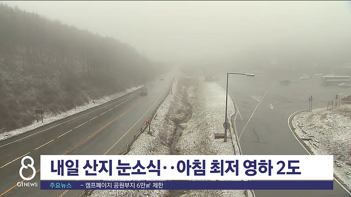 내일 강원도 대부분 지역의 최저 기온이 영하권으로 떨어지겠고, 일부 지역엔 눈이 내리겠습니다.