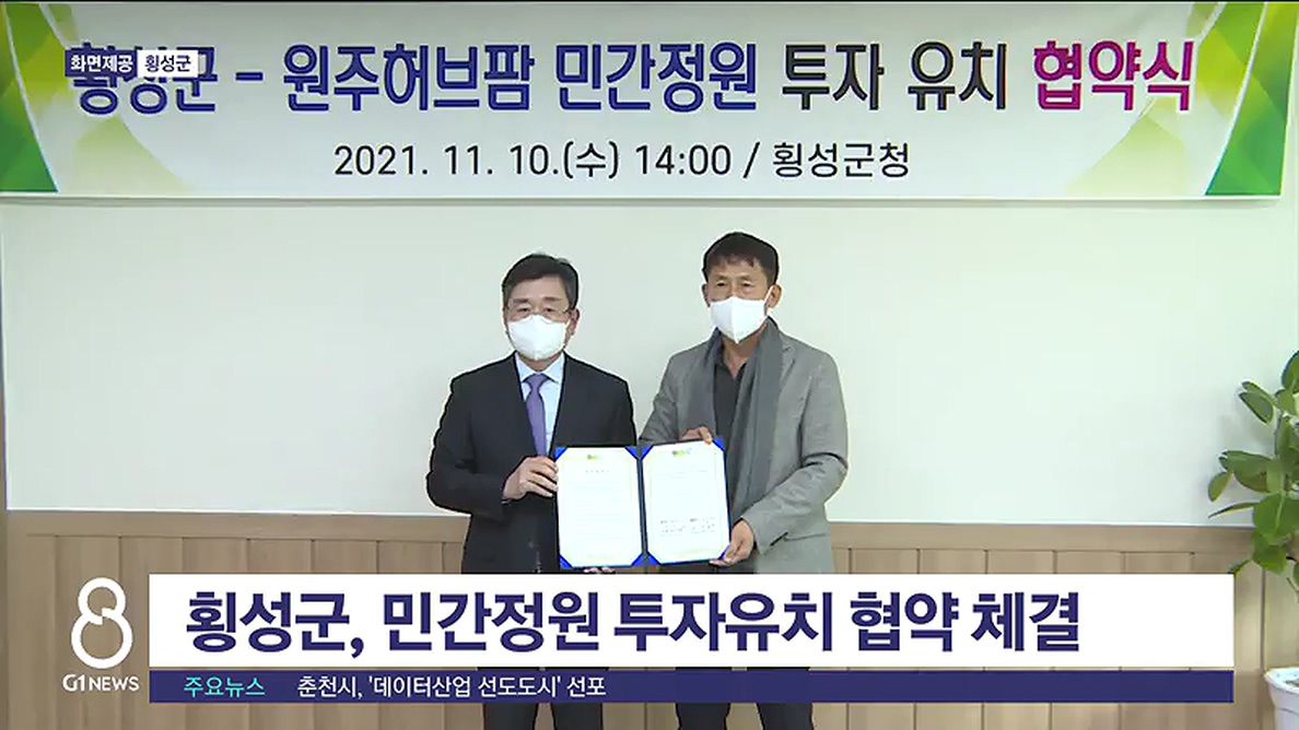 횡성군이 식물박물관 업체 원주허브팜과 민간정원 투자유치 협약을 체결했습니다.