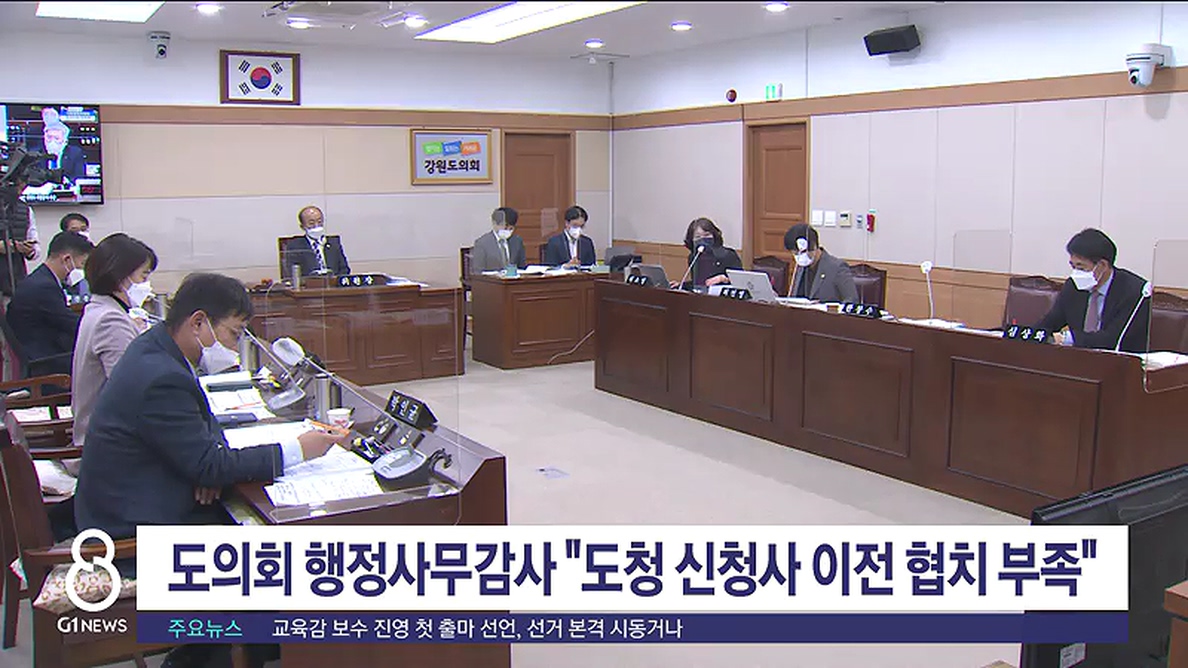 최근 강원도청 이전 신축 논의가 급물살을 타고 있는 가운데, 강원도의회 행정 사무감사에서도 의원들의 질의가 이어졌습니다.