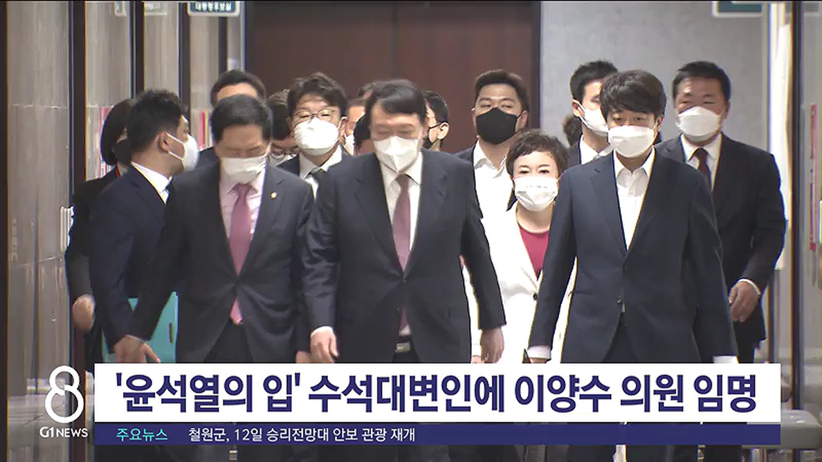 윤석열 국민의힘 대선 후보가 재선의 이양수 의원을 선거대책위원회 수석대변인으로 공식 임명했습니다.