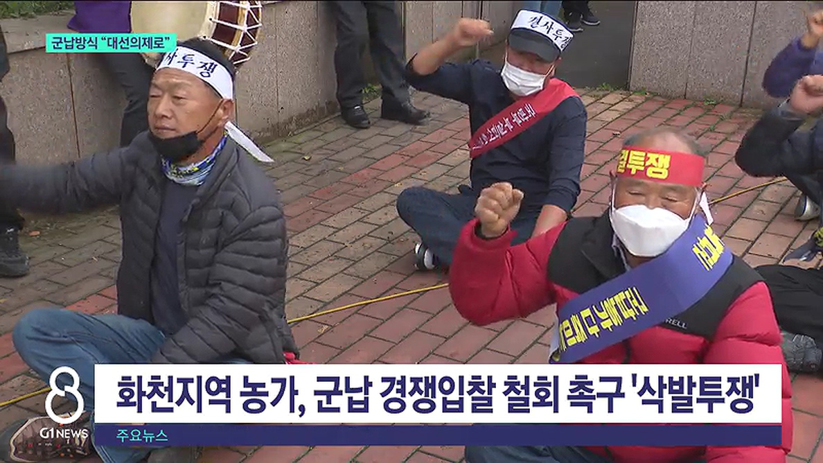 정부의 군납 경쟁입찰 계획에 반발하는 화천지역 군납농가들이 상경 투쟁에 나섰습니다.