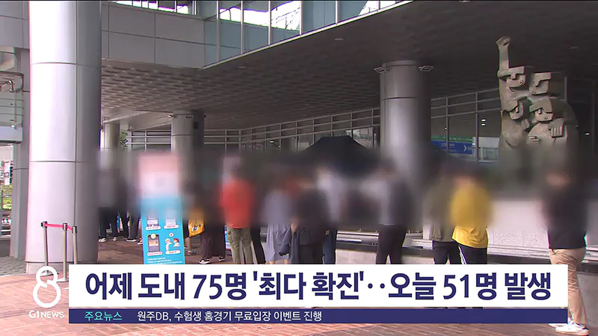 어제 강원도내 코로나19 신규 확진자 수가 역대 가장 많은 75명이 발생한 가운데, 오늘은 11개 시군에서 51명의 확진자가 나왔습니다.