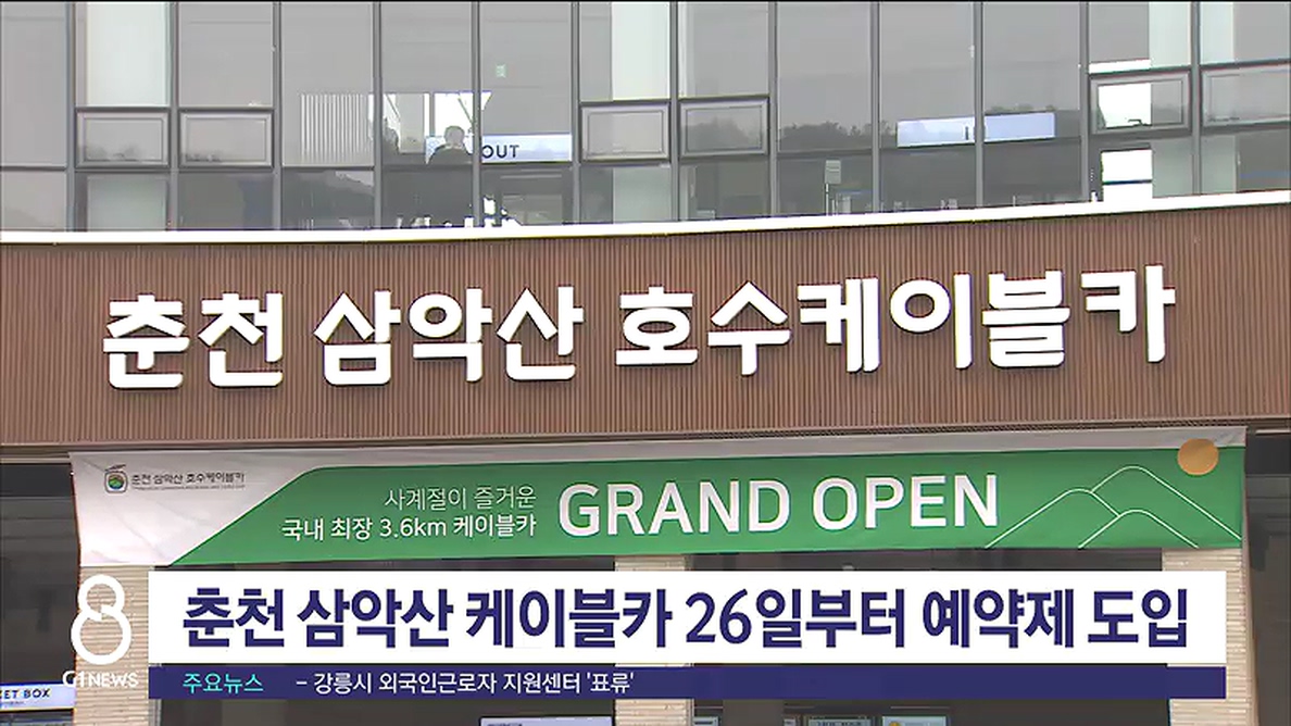춘천시는 오는 26일 오후 4시부터 삼악산 케이블카 운영사 공식 홈페이지를 통한 예약 시스템이 도입된다고 밝혔습니다.