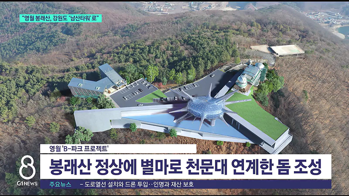별 쏟아지는 영월의 자랑, 별마로 천문대와 연계해 산 정상에는 별 모양 전망 돔을 만듭니다.