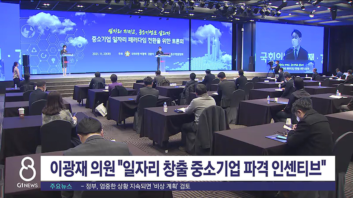 더불어민주당 이광재 의원은 오늘, 중소기업중앙회에서 '일자리는 지키고 중소기업도 살리자'라는 주제로 토론회를 개최했습니다.