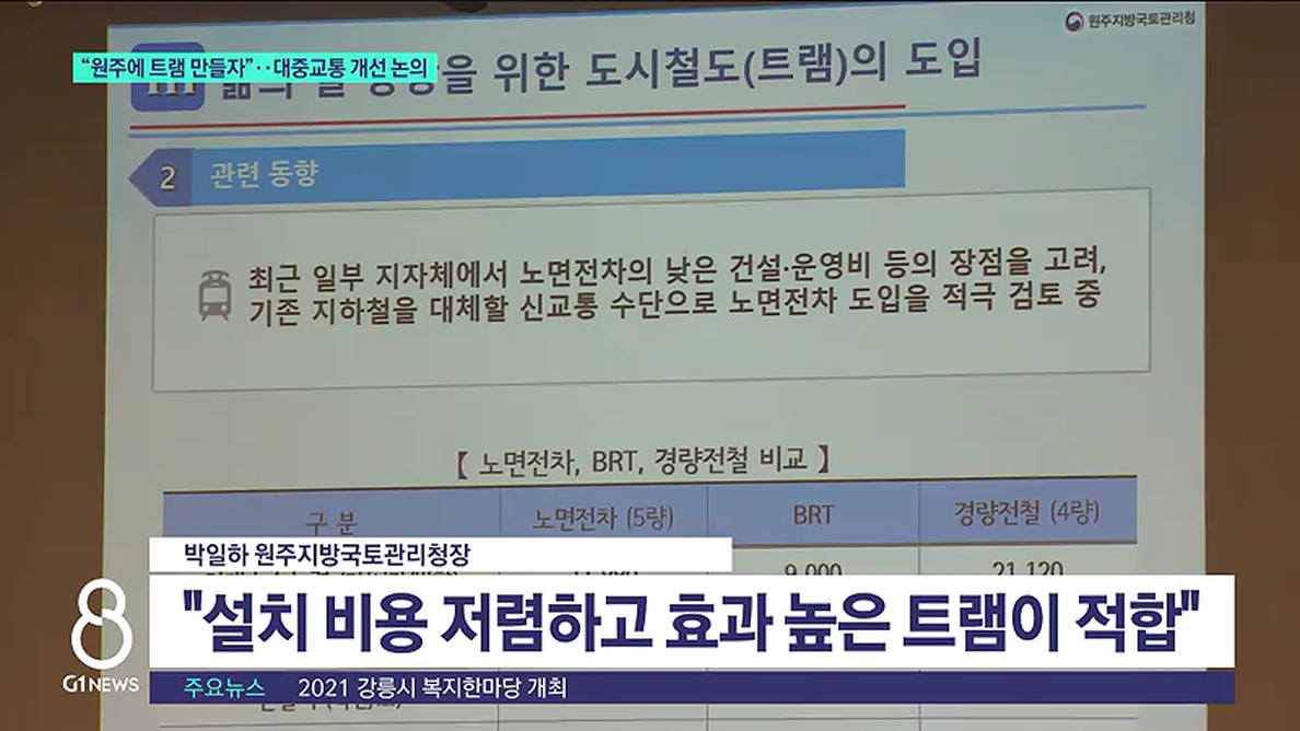 제6차 원주미래발전포럼 기조발제를 통해, 트램 설치의 필요성을 강조하고, 예산 확보 방안과 노선안까지 구체적으로 제시했습니다.