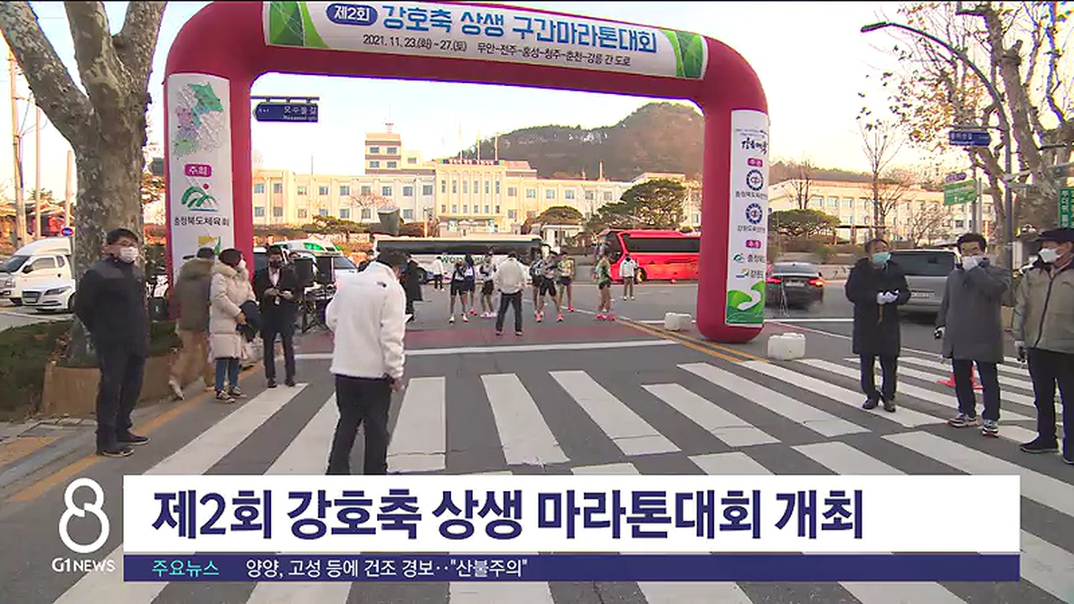 제2회 강호축 상생 마라톤대회가 오늘(27일) 강원도청 앞에서 출발시총을 시작으로 진행됐습니다.
