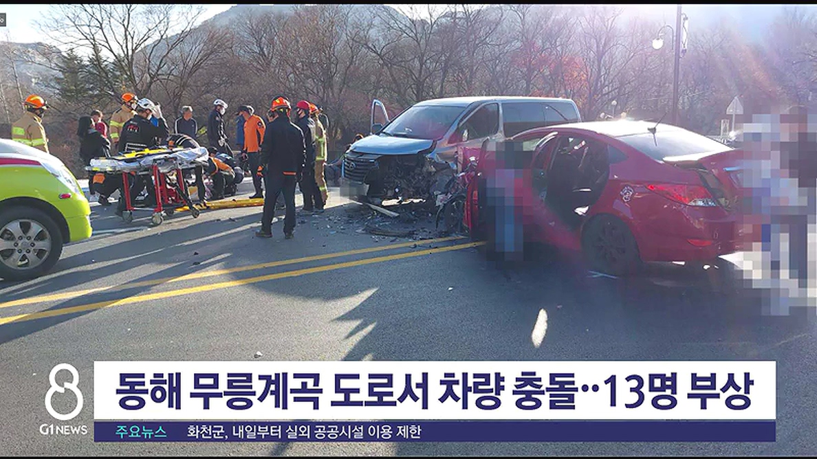 동해 무릉계곡 도로서 차량 충돌..13명 부상