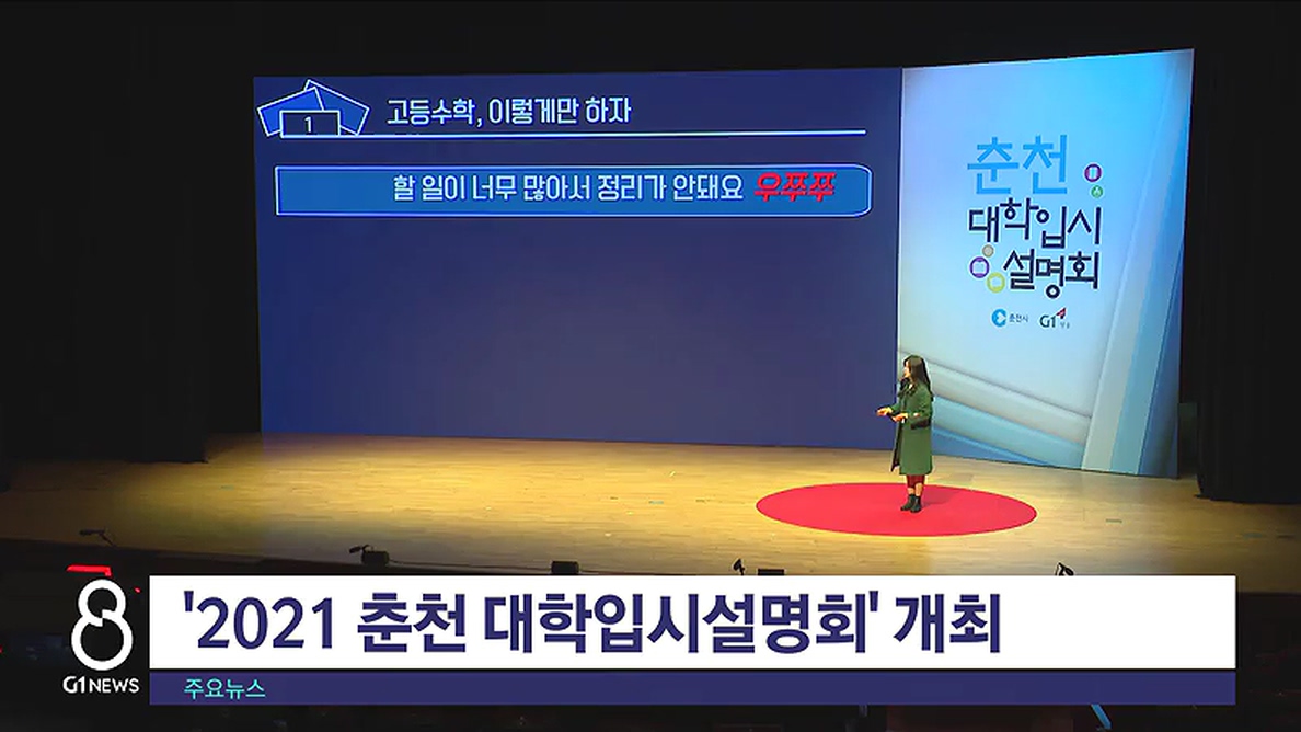 춘천시가 주최하고 G1방송이 주관하는 이번 입시 설명회는 예비 고3과 예비 수험생들을 대상으로, 수능을 앞둔 겨울방학 기간 과목별 학습 법과 수준별 집중 전략 등에 대해 입시 전문가들의 강의로 진행됐습니다.